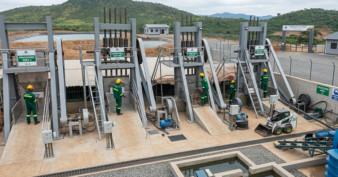 The gold milling process liberates gold particles from crushed ore through crushing, grinding, and a recovery method like gravity separation or chemical leaching (cyanide). The crushed ore is ground to a fine powder, and then techniques such as concentration tables, or cyanidation are used to separate the gold. Finally, the gold is recovered, often by smelting it.